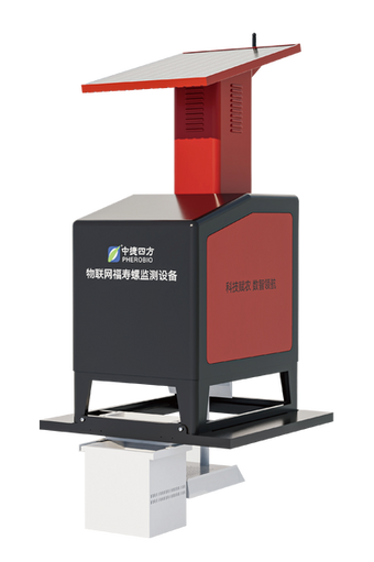 that can attract and kill target insects when combined with pheromone lures. AIM is solar-powered and connected to the internet, with three individual infrared sensors for counting each target insect that is attracted and killed.